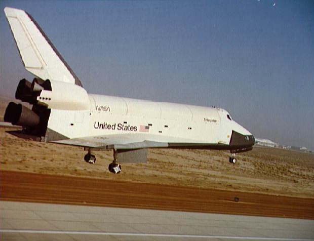 El Enterprise, el primer transbordador espacial orbital, iba a ser originalmente llamado Constitution (en honor al Bicentenario de la Constitución de EE.UU). Sin embargo, los espectadores de la popular serie de televisión de ciencia ficción Star Trek, comenzaron a escribir a la Casa Blanca iniciando una campaña pidiendo que renombraran el vehículo y lo llamaran Enterprise. Designado como OV-101, el vehículo se completó en la base de Rockwell de las Fuerzas Aéreas (Plant 42, Site 1 Palmdale California) en su servicio de montaje el 17 de Sept.de 1976. El 31 de Enero de 1977, fue transportado 36 millas desde Rockwell al Servicio de Investigacion de Vuelo Dryden de la Nasa, en la base de la Fuerza Aerea de Edwards, para el programa de prueba de enfoque y aterrizaje.A lo largo de nueve meses, desde Febrero hasta Noviembre de 1977, se desarrolló el programa ALT del Servicio de Investigacion de Vuelo Dryden, que demostró que la lanzadera podría volar en la atmósfera y aterrizar como un avión, sin probar en ningún momento el vuelo de planeo .