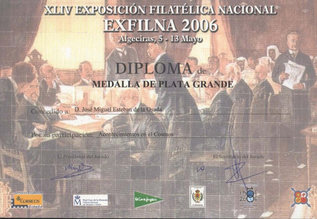 Mi colección de Astrofilatélia presentada en la Exfilna 2006, con el título «Acontecimientos en el Cosmos»