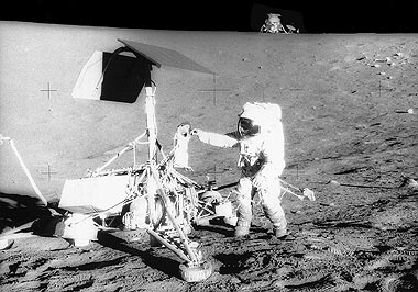 El siguiente vuelo a la Luna empezó, con el lanzamiento del Apolo 12, llevando a bordo a los astronautas Charles Conrad, Richard F. Gordon y Alan L. Bean. Una vez en órbita lunar, Conrad, piloto y comandante, y Bean, piloto del Módulo Lunar, pasaron a este último. Se posaron al norte de la cadena montañosa Riphaeus, a unos 180 m del lugar donde lo hiciera dos años antes el Suveyor 3.