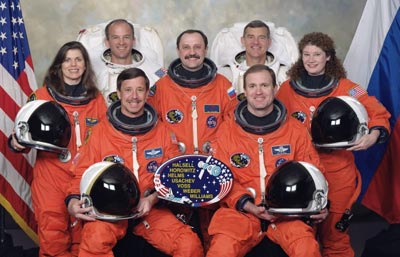 Tripulantes: James D. Halsell, Jr. (5) Scott J. Horowitz (3) Mary Ellen Weber (2) Jeffrey N. Williams (1) James S. Voss (4) Susan J. Helms (4) Yuri Vladimirovich Usachev (3)