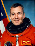 El comandante, Terry Wilcutt, Coronel y piloto de pruebas de la infantería de marina, 50 años. Acredita 724 horas en el espacio, en tres misiones. Fue piloto de las STS-68 (1994) y STS-79 (1996) y comandó la STS-89 (1998). Estas dos últimas protagonizaron los acoplamientos cuarto y octavo, respectivamente, con la Mir.
