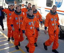 Como ya es habitual antes de cada misión, la tripulación lleva a cabo un simulacro de los preparativos previos al lanzamiento unas semanas antes del despegue. Así pues, este fin de semana los astronautas de la Misión STS-122 viajaron hasta el Centro Espacial Kennedy para participar en estas pruebas.