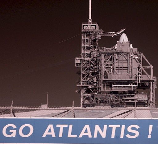 El transbordador Atlantis alcanzó la rampa de lanzamiento el pasado 10 de noviembre, tal y como estaba previsto. Su lento viaje de 7 horas desde el edificio de ensamblaje de vehículos se desarrolló sin contratiempos, sobre el enorme vehículo oruga.