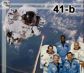 Tripulantes: Vance D. Brand (3) Robert L. Gibson (1) Bruce McCandless II (1) Ronald E. McNair (1) Robert L. Stewart (1)