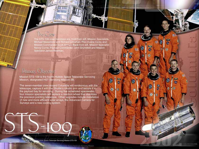 Tripulantes: Scott D. Altman ( 3) – Duane G. Carey ( 1) – John M. Grunsfeld (4 ) Nancy J. Currie ( 4)- Richard M. Linnehan (3 ) James H. Newman (4 ) Michael J. Massimino (1 )