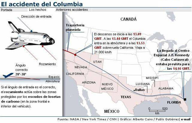 Los investigadores de la tragedia concluyeron que el escudo térmico del transbordador estaba perforado cuando la nave se internó en las capas densas de la atmósfera, lo que permitió al aire recalentado a 1.650 grados Celsius colarse en el ala izquierda y originar así la desintegración de la nave y la muerte de sus tripulantes.