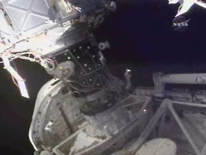 El astronauta Charles Hobaugh tuvo a su cargo la operación del brazo robótico de la EEI que tomó de la bodega del transbordador la viga y la llevó, lentamente, hasta el sitio donde quedaría instalada.